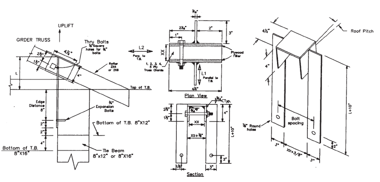 9) Uplift values are also controlled by compression perpendicular to grain of 565 psi for Southern Pine per NDS-2005. For other species, contact Engineer for values.